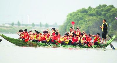 一來到比賽現(xiàn)場,就能感受到濃厚的節(jié)日氛圍,岸邊人頭攢動,彩旗飄揚(yáng),隨著發(fā)令槍聲的響起,龍舟如離弦之箭躍入水面,鼓聲、吶喊聲此起彼伏,劃槳濺起的水花在空中飛舞,觀眾們?yōu)橹序v,紛紛為自己支持的隊(duì)伍加油鼓勁。
